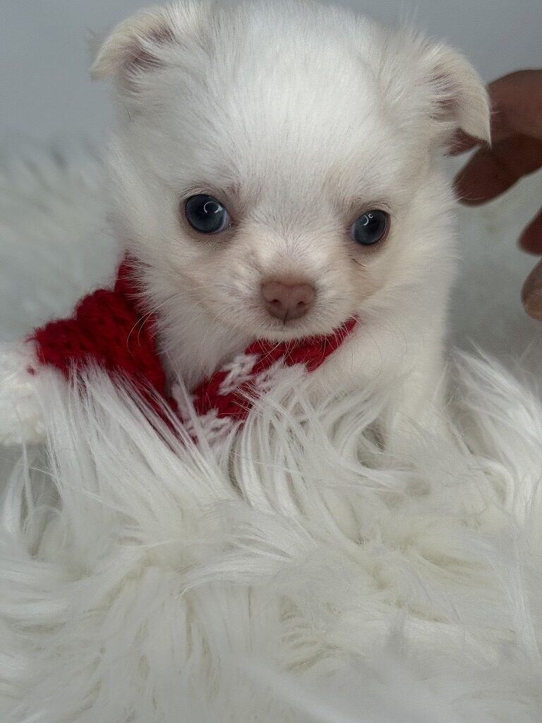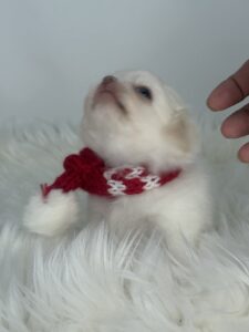 かわいいクリーム・ホワイトのおんなのこ 元気なおんなのこです **見学予約をされていても、その日付より早く見学に来られて、他の方が予約金を入れた時点で予約確定となります 「お迎えしたい」との連絡と入れ違いに予約が決まってしまっていることがありますが、上記の件、ご了承ください ※健康診断、ワクチン接種後のお渡しとなります ※お引き渡しは10/26からとなります |