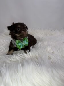 かわいいチョコレート・タン&ホワイトのおとこのこ 元気なおとこのこです **見学予約をされていても、その日付より早く見学に来られて、他の方が予約金を入れた時点で予約確定となります 「お迎えしたい」との連絡と入れ違いに予約が決まってしまっていることがありますが、上記の件、ご了承ください ※健康診断、ワクチン接種後のお渡しとなります ※お引き渡しは01/09からとなります |