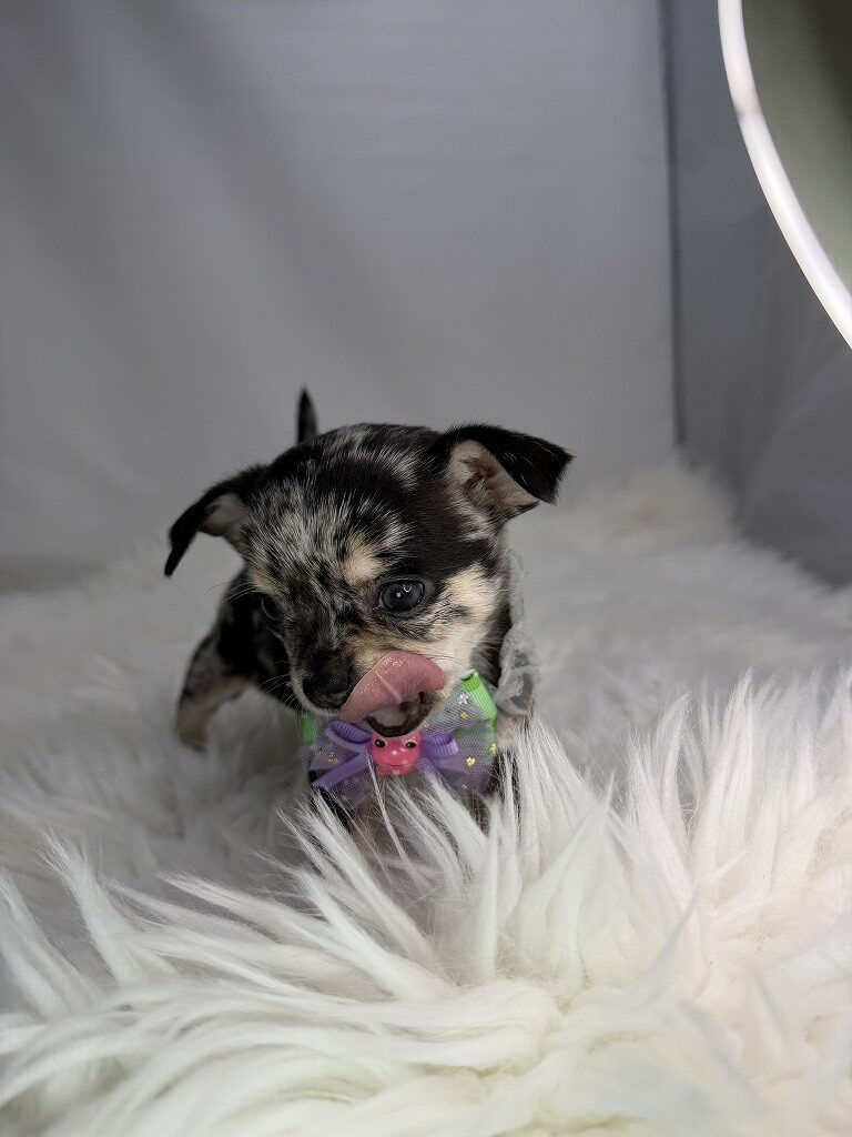 レアカラーのブルー・マールのおんなのこ 愛嬌抜群のおんなのこです **見学予約をされていても、その日付より早く見学に来られて、他の方が予約金を入れた時点で予約確定となります 「お迎えしたい」との連絡と入れ違いに予約が決まってしまっていることがありますが、上記の件、ご了承ください ※健康診断、ワクチン接種後のお渡しとなります ※お引き渡しは01/25からとなります |