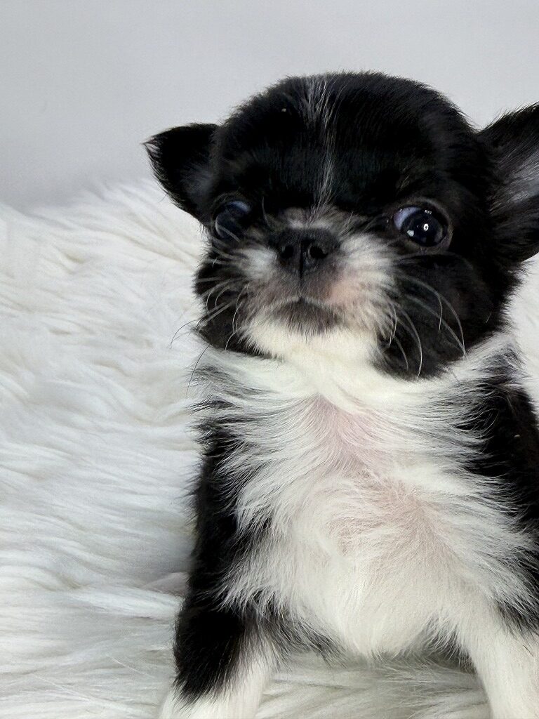かわいいブラック・ホワイト&タンのおんなのこ ちっちゃいおんなのこです **見学予約をされていても、その日付より早く見学に来られて、他の方が予約金を入れた時点で予約確定となります 「お迎えしたい」との連絡と入れ違いに予約が決まってしまっていることがありますが、上記の件、ご了承ください ※健康診断、ワクチン接種後のお渡しとなります ※お引き渡しは01/28からとなります |